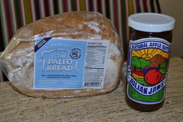 After we finished up, we headed for Julian Bakery http://www.julianbakery.com/ where I wanted to buy a loaf of their new, only one of it’s kind, Paleo Bread. Yes, that’s right, Paleo Bread, and they even make two kinds (almond and coconut). I opted for coconut this morning, and also found a small jar of organic, natural apple butter, which I’ve been in the market for too. Can you imagine, bread that doesn’t have an ingredient list the length of the Great Wall of China? Welcome back bruschetta!