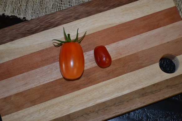 Just for fun, I decided to compare it to the store bought grape tomatoes I have, what a difference: