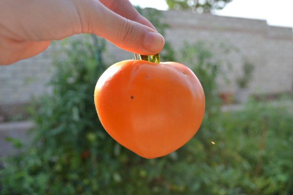 I did grow it, Mom! The plant was somewhat smothered by the others, so we gently pulled it out and separated it, trimmed some of the dead, and have it growing in a different direction away from the garden. Now there are plenty of baby orange oxhearts 🙂 Thankfully it’s still hot in San Diego!