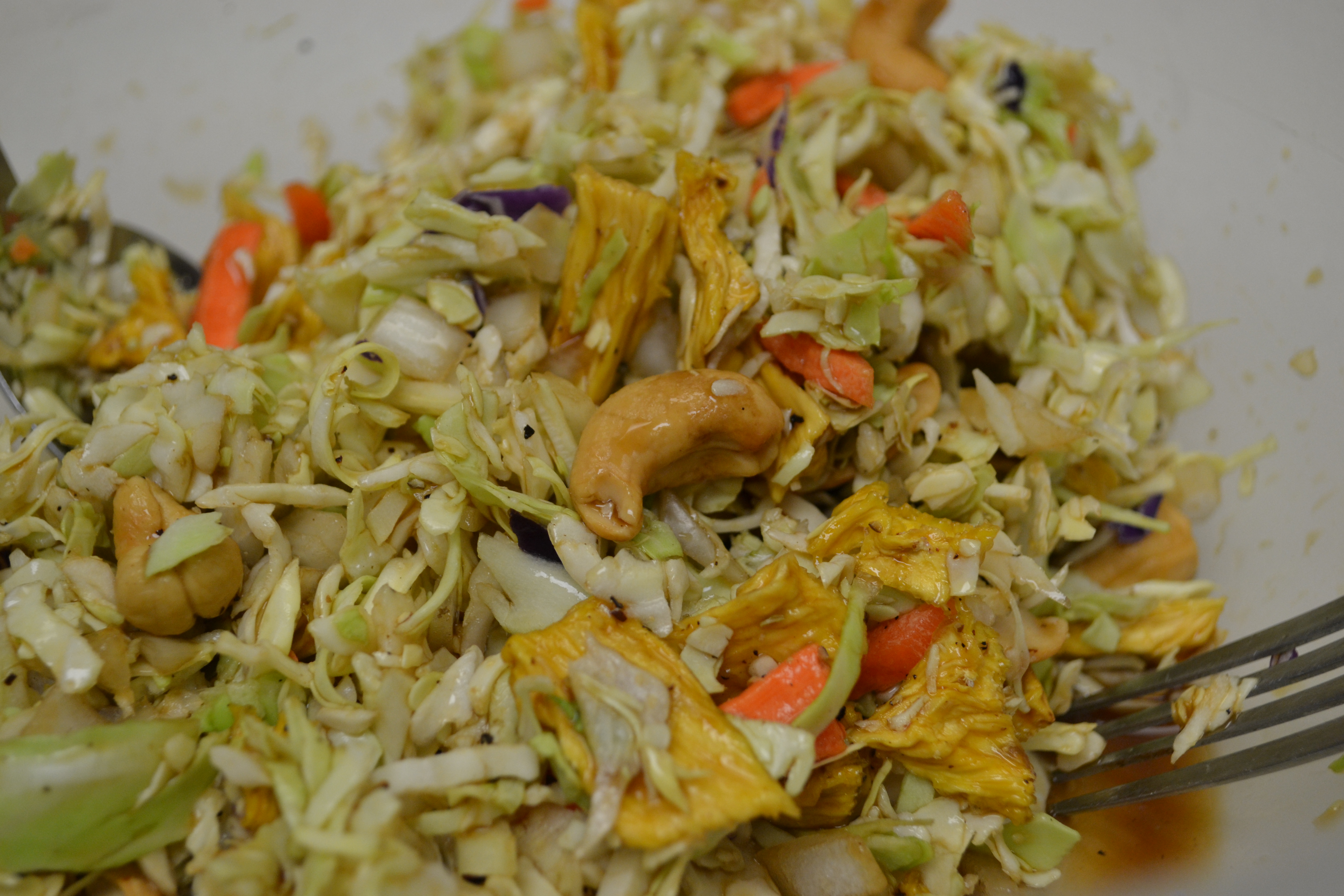 Mix everything in a bowl, and enjoy! Use as much coconut aminos as you prefer (some like it saaaauuuuucy), and just a little salt/pepp. I had some leftover, which I just had for lunch, and it is even better the second day; the dehydrated pineapple had softened a bit, but the cashews were still crunchy. I don’t think it’d be good after day 2 🙂DSC_0308DSC_0312