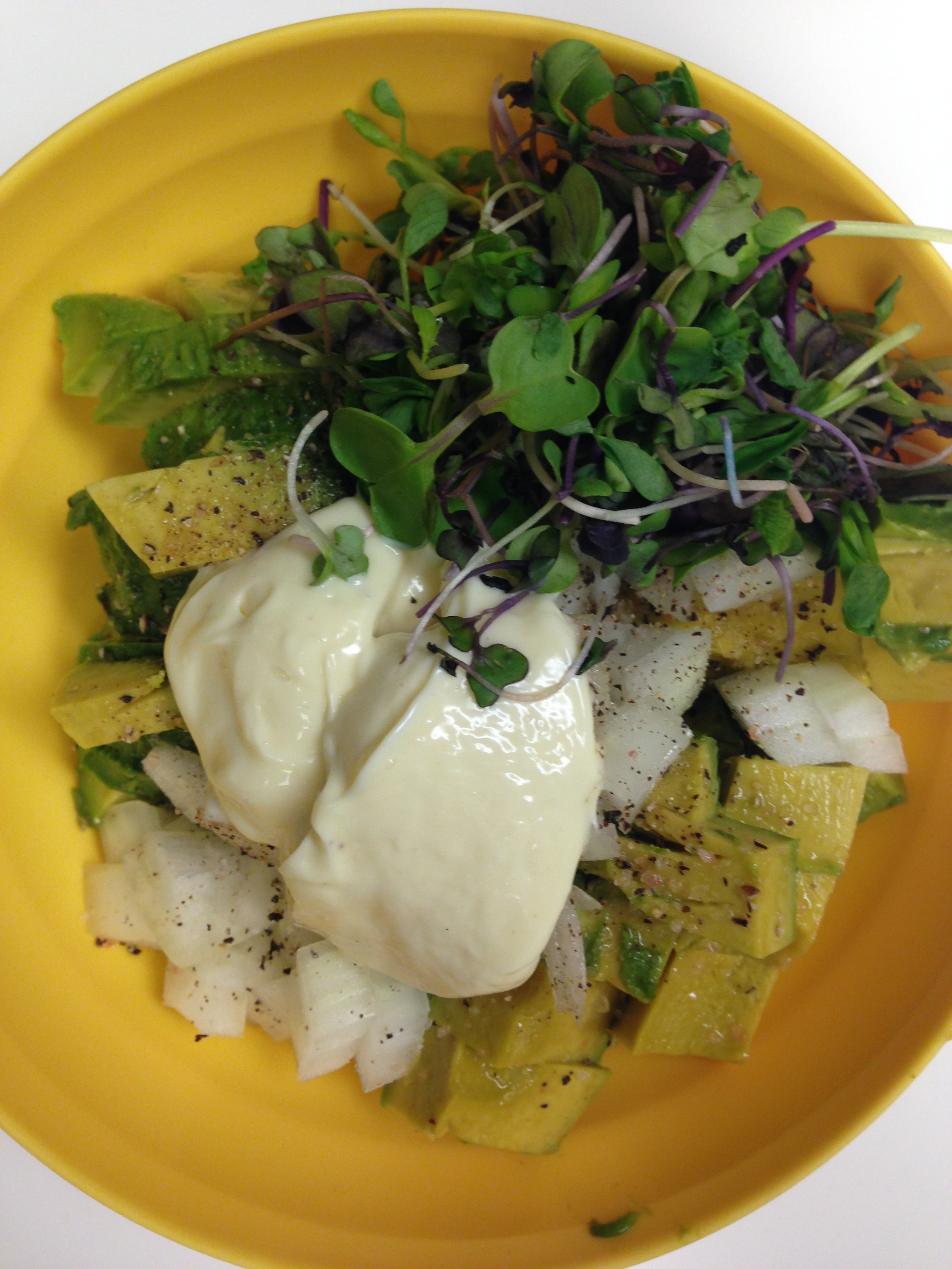 Mix together, and enjoy a filling, rich, healthy alternative to the traditional soy/chemical filled chicken/tuna/egg salads out there.