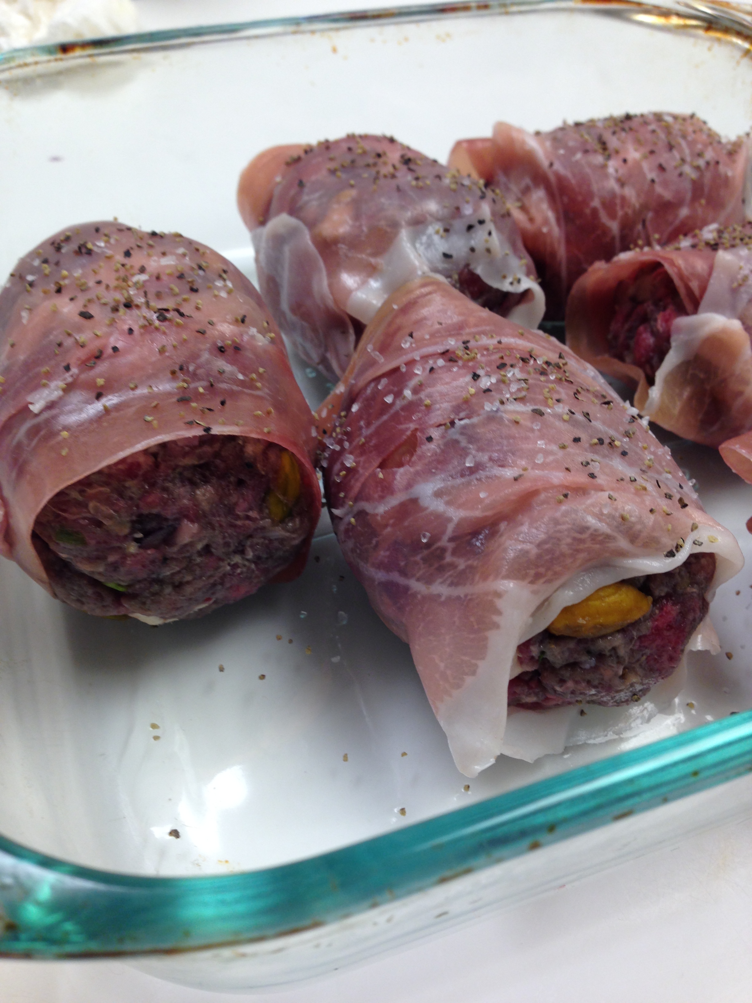 Prosciutto Wrapped Blue Cheese Pistachio Meatballs